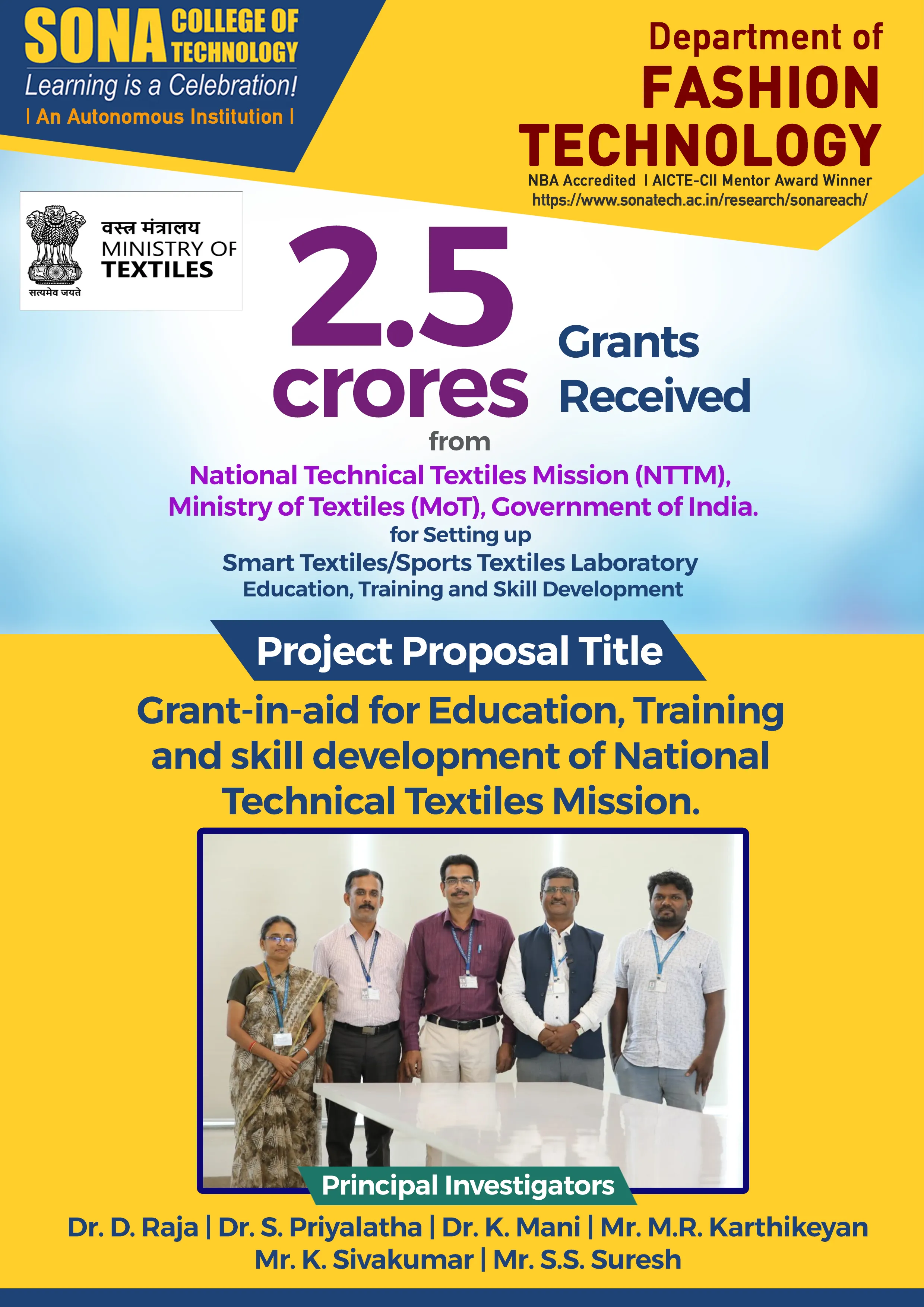 The world-class infrastructure in the department, the focus on practical training and creativity and the perseverance of both the faculty and the students contribute to embellishing the image of the college as an outstanding pioneer in the field of Garment and Fashion Technology.