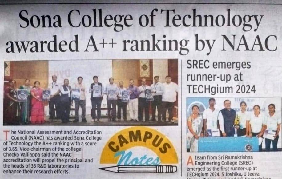 Sona College of Technology awarded A++ ranking by NAAC - Times of India