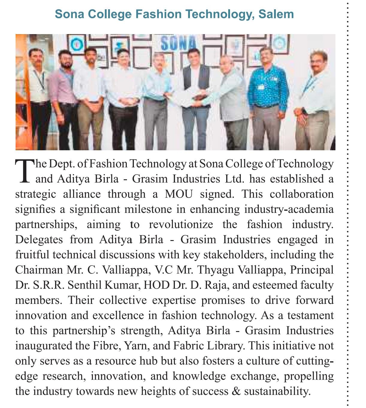 Sona College signed MOU with Aditya Birla - Grasim Industries ltd