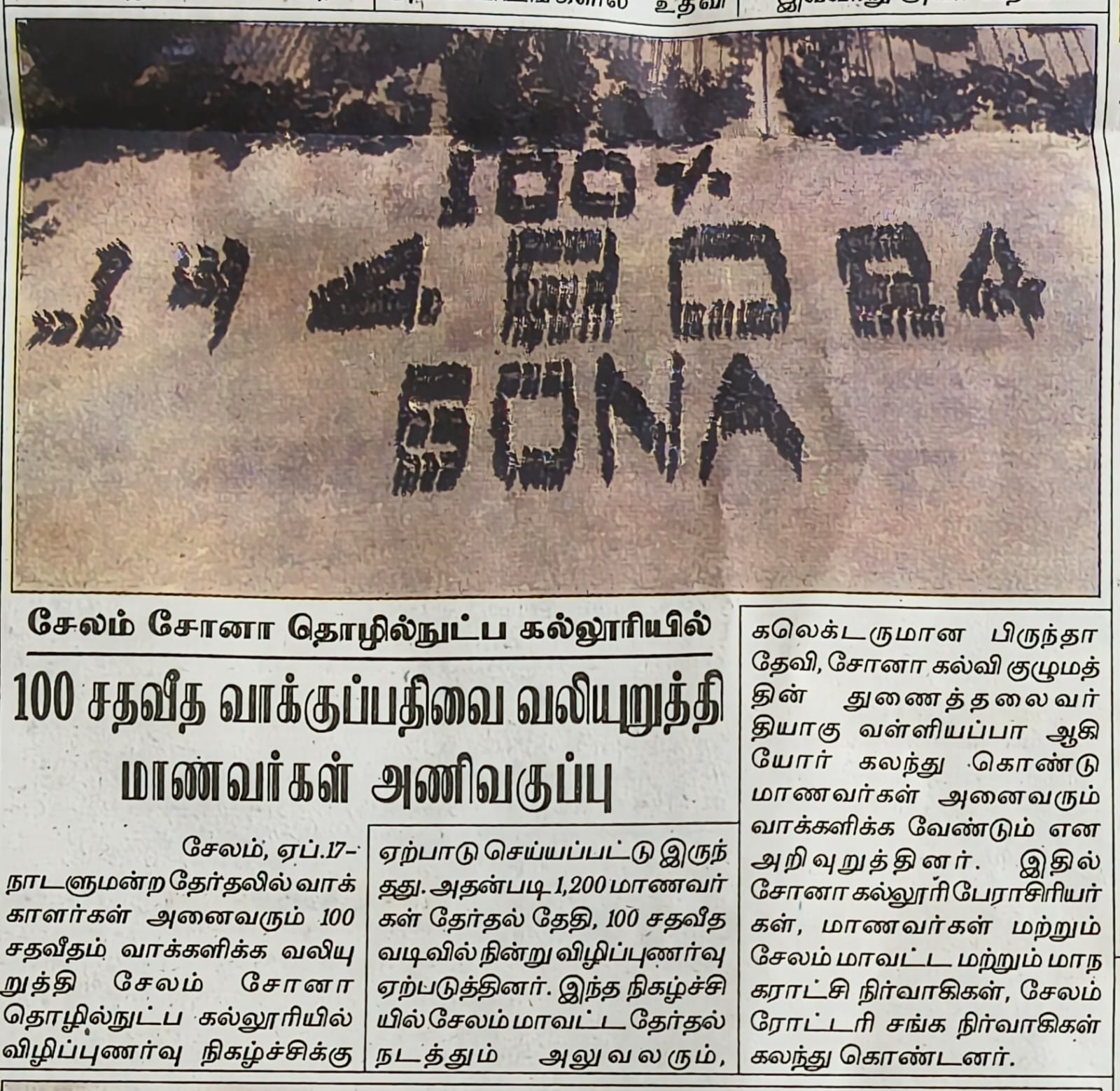Sona college students creates awareness for 100% vote for election - Dinathanthi