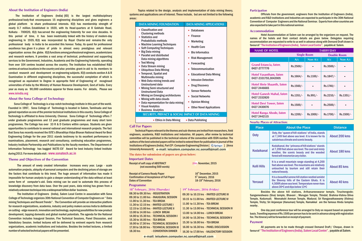 Post navigation 30th National Convention of Computer Engineers and National Seminar on Data Mining Techniques and Recent Trends