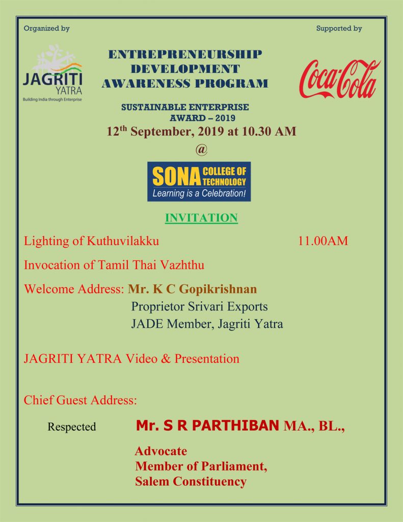 Our students participate in the bharath yatra in a special train along with 500 other college students across India to acquire entrepreneurial skills and knowledge.