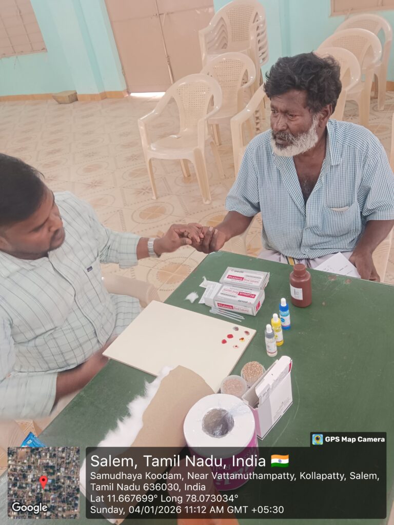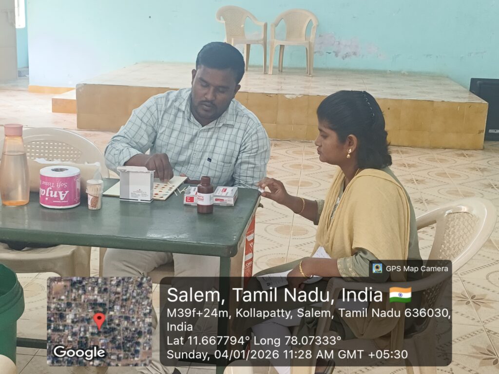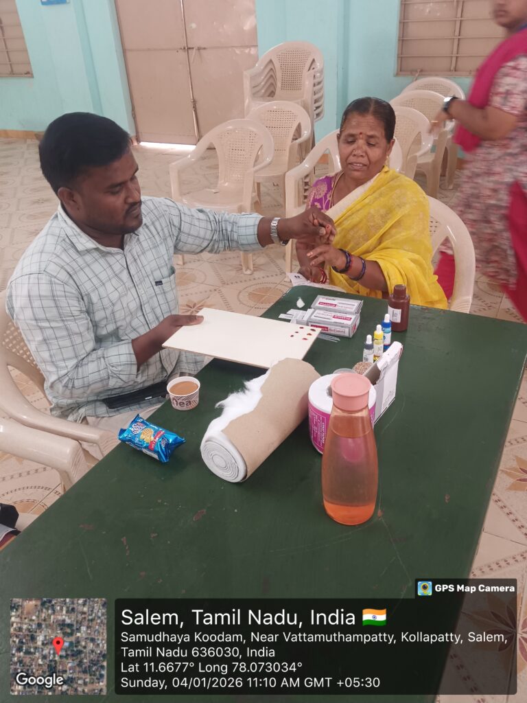 The NSS units of Sona College of Technology organized a Blood Group Identification Camp at Vattamuthampatty Village and MGR Nagar, Salem Block, on the third day of the NSS Special Camp (04.01.2026) in association with Maruthi Blood Bank and Research Foundation, Salem.