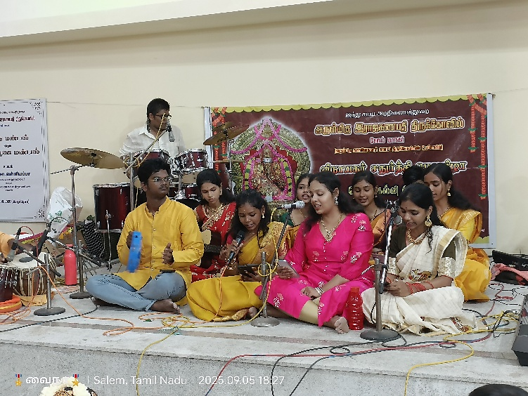In celebration of the auspicious Vinayagar Chaturthi Festival 2025, a series of traditional devotional programs commenced at the revered Sri Rajaganapathi Temple, Salem, on September 2, 2025, and continued through September 5, 2025. Under the guidance of our esteemed chairman, both students and staff actively participated in the devotional programs held during the festival. Each day witnessed the vibrant and dedicated involvement of our college community in bhajans, devotional songs, and spiritual discourses.