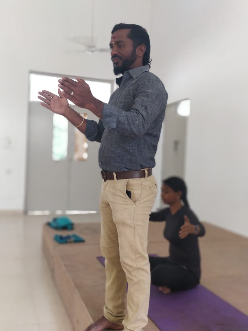 The resource person is Mr.M.Marimuthu, Secretary, Salem District Yogasana Association.