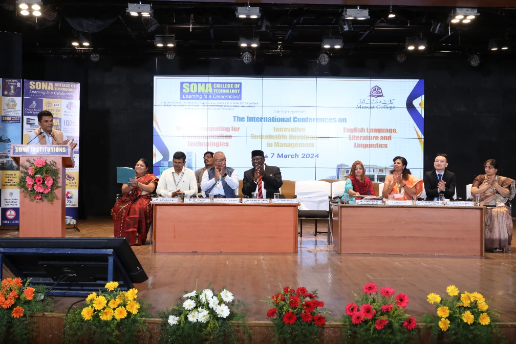 Sona College of Technology and Muscat_College collaborated to host an International Conference on March 6th and 7th, 2024. The event, focusing on Green Computing in Communication and Technology, Sustainable Development in Management, and English Language studies, attracted participants from over 15 countries. The inaugural ceremony took place at the Sri Valliappa Auditorium, with the esteemed presence of Mr. Chocko Valliappa and Mr. Thyagu Valliappa , Vice Chairmen of Sona Institutions , Dr.Senthil Kumar SRR , Principal of Sona College of Technology, Dr. Dr Khalfan Al-Masruri, Associate Professor , Dean of Muscat College, Sultanate of Oman, Dr. Chandrasekar S , Dean of R&D at Sona College of Technology, and a notable number of attendees contributing to the exchange of ideas and knowledge across diverse academic disciplines.