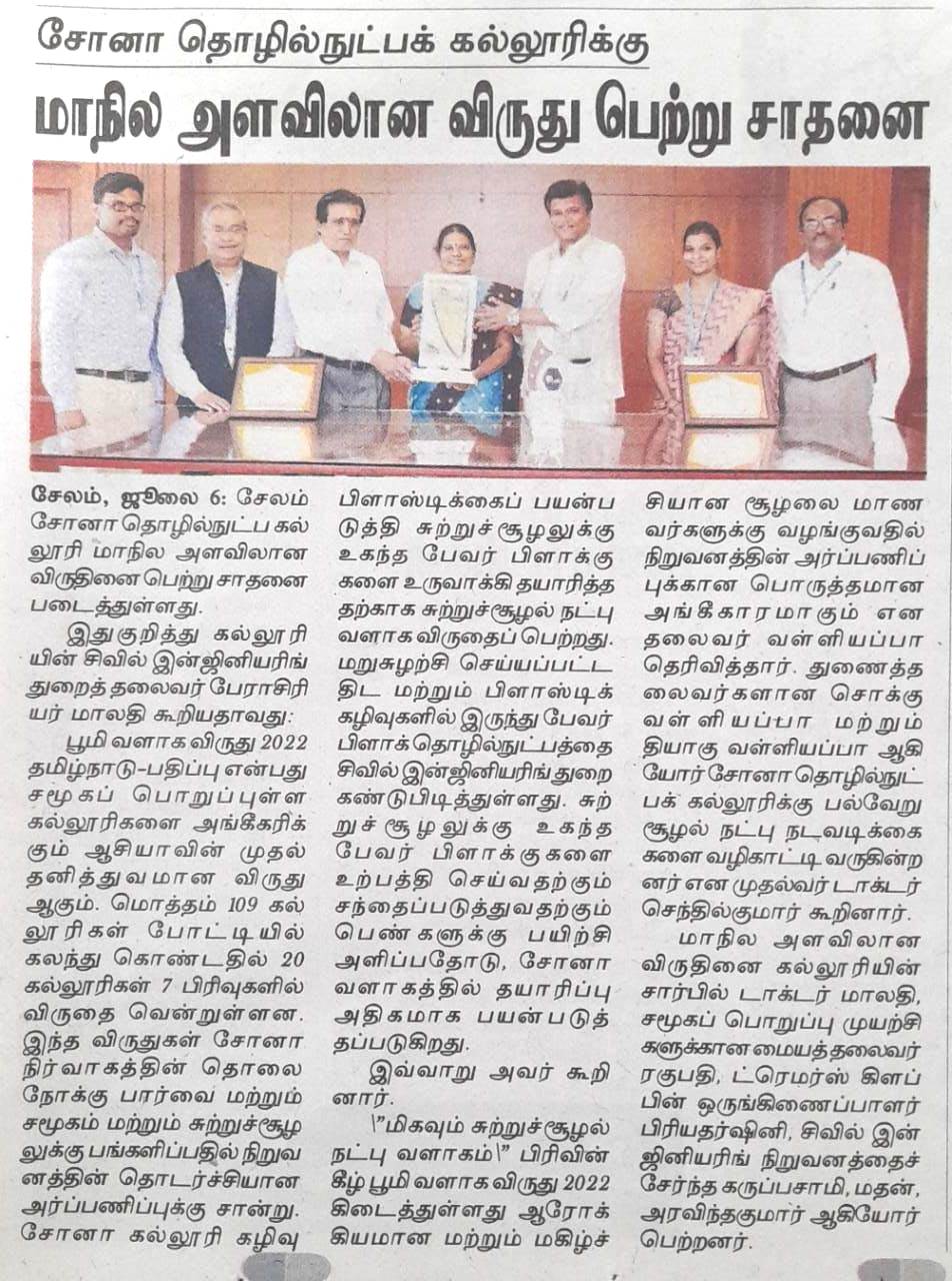 Sona College of Technology Receiced State Level Award
