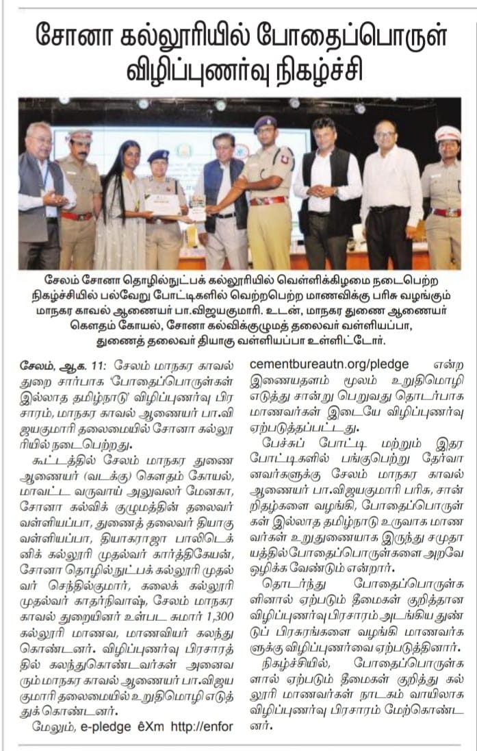 Sona college conducts Alcohol prevention program 2023 - Dinamani