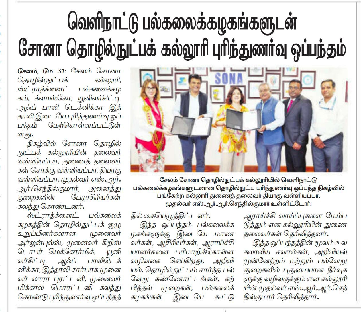 Sona College of Technology MoU with Foreign Universities - Dinamani