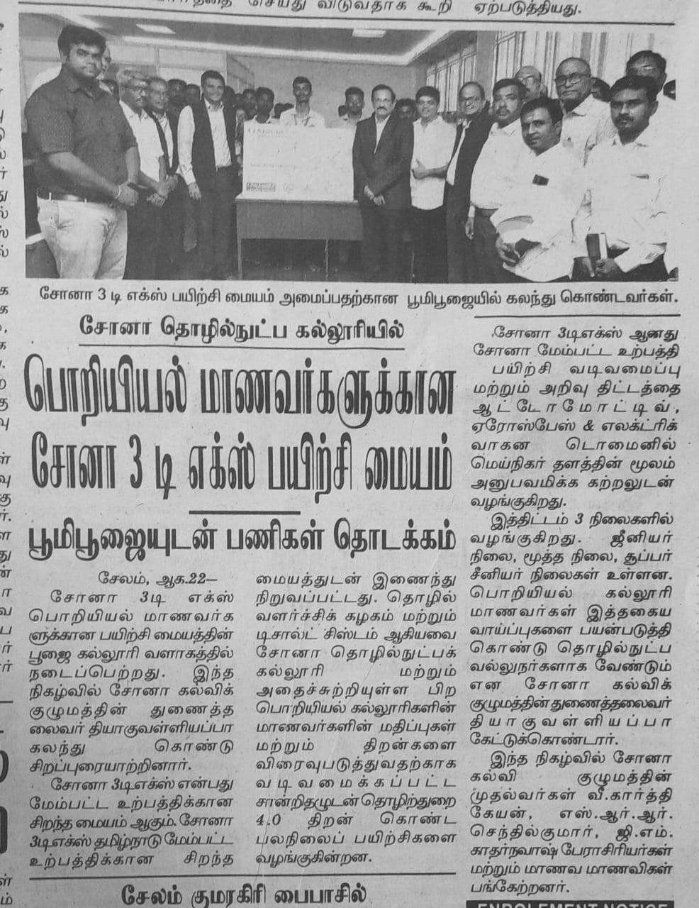 Sona College of Technology started its new center of excellence for design engineering training and solutions, called Sona3DX at our Center of Excellence for Advanced Manufacturing
