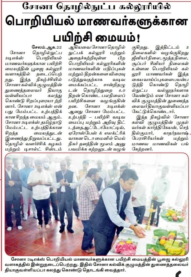 Sona College of Technology started new Center of Excellence for Advanced Manufacturing (Sona3Dx)