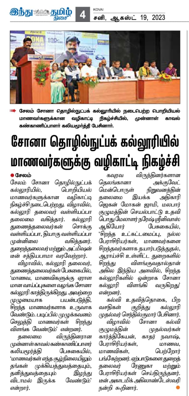 Sona College Conducted Student Mentor Program - Tamil Hindu