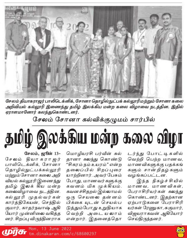 சோனா கல்வி குழுமம் சார்பில் தமிழ் இலக்கிய மன்ற கலை விழா 2022