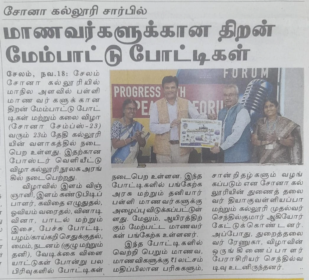 Sona School of Business and Management organized Dhriti 23 - Dinakaran