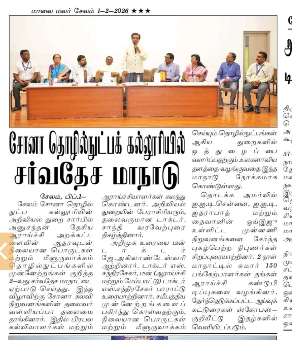 சோனா தொழில்நுட்பக் கல்லூரியில் சர்வதேச மாநாடு